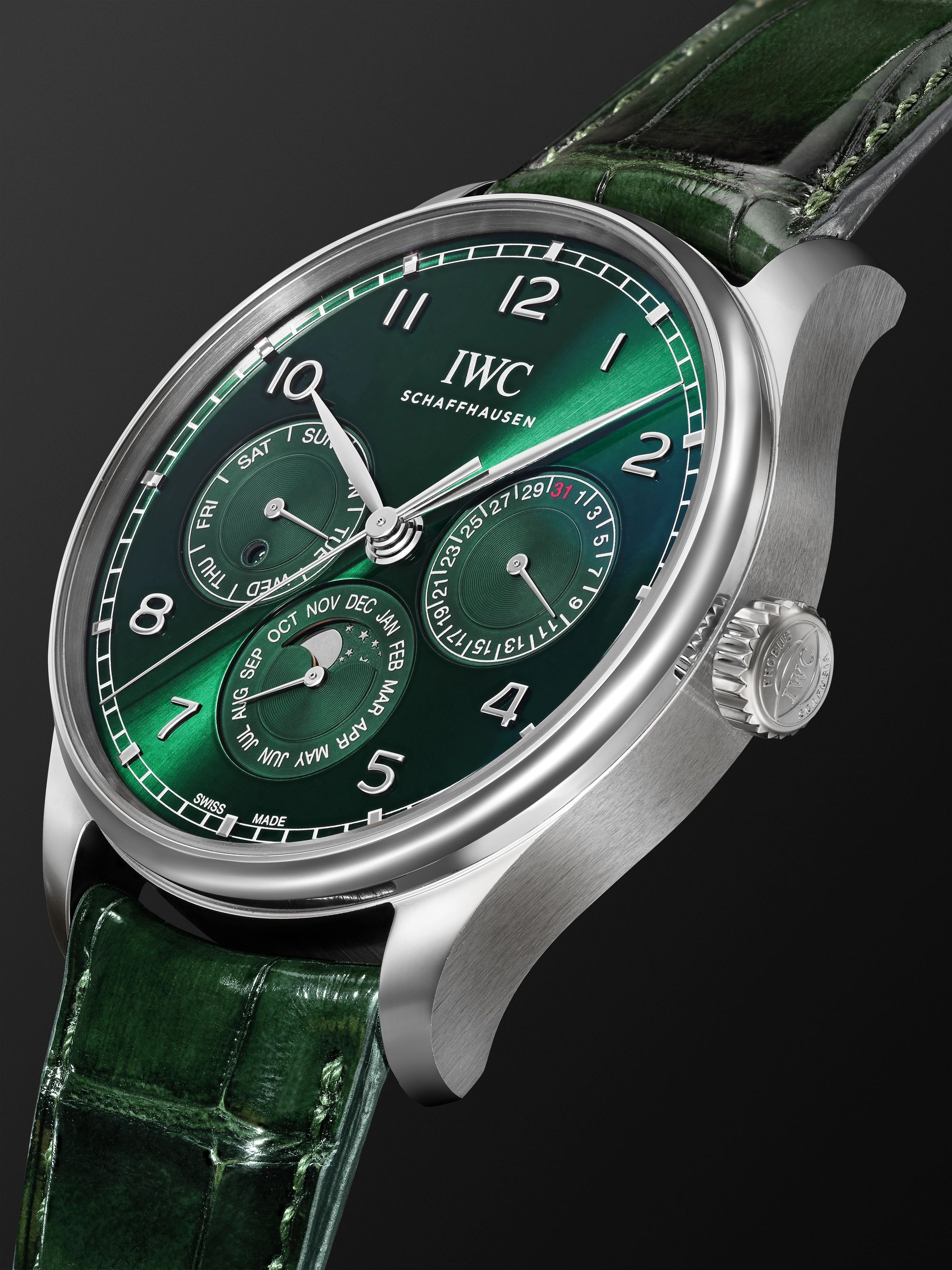 The IWC Portugieser is a legendary timepiece renowned for its timeless design and exceptional precision. Originally created in the 1930s, it combines classic elegance with modern functionality. Featuring a clean, large dial with Arabic numerals and a sophisticated, refined look, the Portugieser is powered by IWC's high-performance movements, offering both chronograph and time-only models. Its sleek case, often in stainless steel or precious metals, exudes luxury, making it a favorite among watch enthusiasts. The IWC Portugieser is a perfect blend of tradition, craftsmanship, and style, ideal for those who appreciate both heritage and innovation in horology.